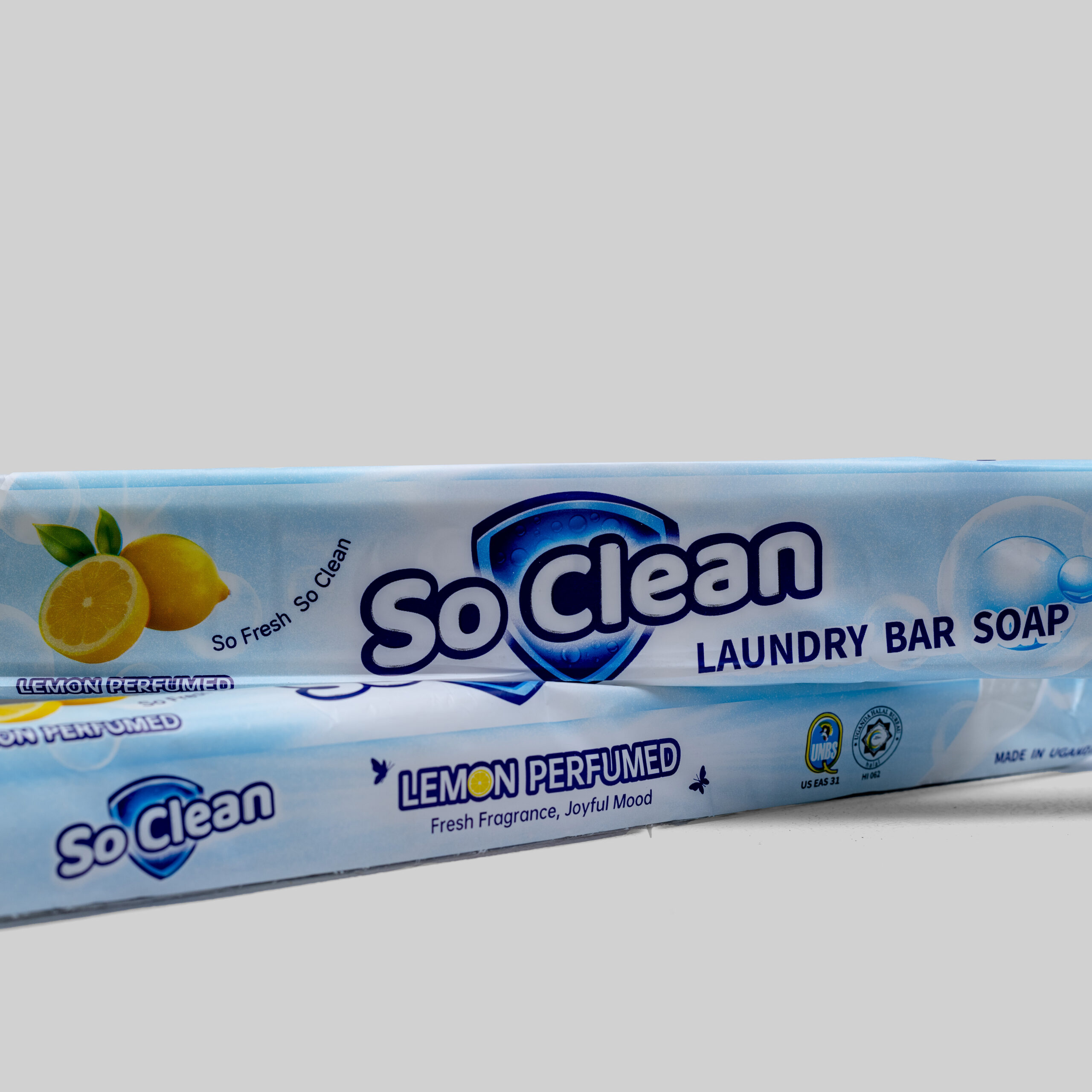 So Clean Lemon Perfumed Laundry Bar Soap offers powerful cleaning with a fresh lemon fragrance. Made in Uganda, this bar soap ensures a fresh, joyful mood, making laundry tasks easy and effective for bright, clean clothes.