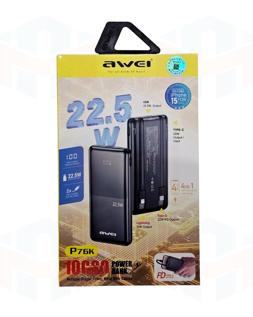 4-in-1 multi-output fast-charging power bank.